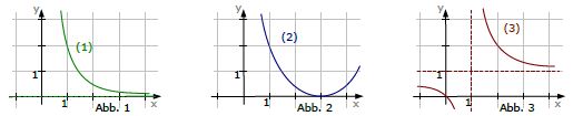 sind drei Schaubilder mitsamt Asymptoten gezeichnet. Ordnen Sie die Schaubilder ihren Funktionen zu.