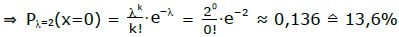 Dieser ist in unserer Aufgabe E(x)=2. In der Poission-Verteilung heißt er λ=2.