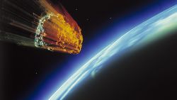 Im Durchschnitt fallen auf jeden Quadratkilometer der Erdoberfläche alle 1.000 Jahre vier Meteoriten [die Zahlen stimmen in etwa].