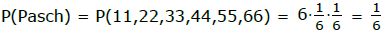 Zuerst berechnen wir die W.S. von einem Pasch bei einem Wurf.