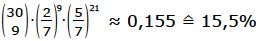 Die W.S., dass 9 Personen am WE Geburtstag haben und 21 nicht am WE Geburtstag haben, liegt bei